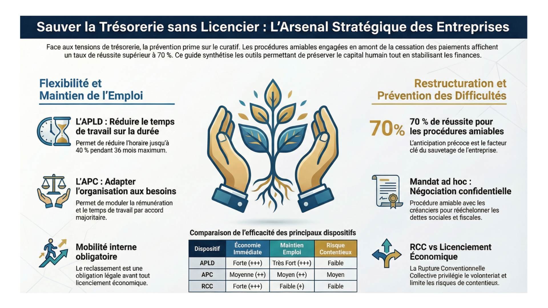 APLD, APC, mobilité interne, RCC, mandat ad hoc ou sauvegarde : chaque solution répond à une situation spécifique.
