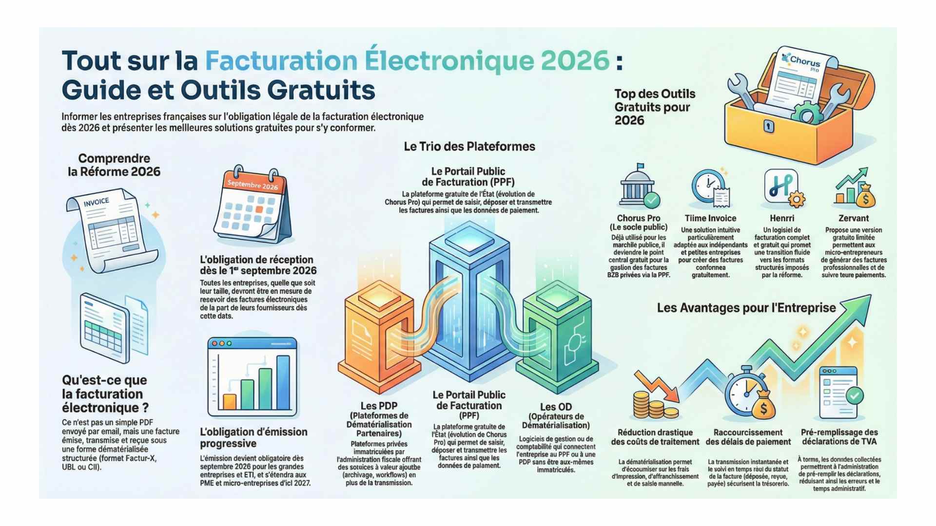 Découvrez les meilleurs outils gratuits de facturation électronique conformes à la réforme 2026. Comparatif neutre, formats légaux, conseils et pièges à éviter