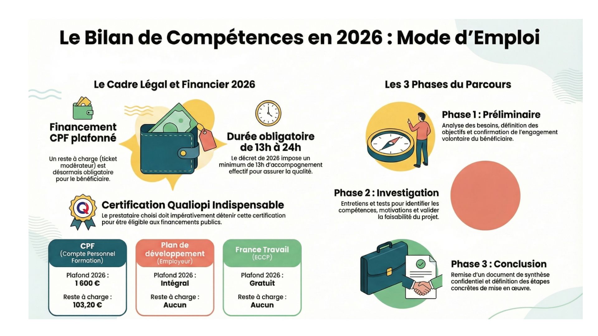Le bilan de compétences reste en 2026 l’un des dispositifs les plus puissants pour prendre en main votre carrière. Malgré les évolutions réglementaires (plafond CPF, durée minimale, ticket modérateur), il demeure accessible, financé et surtout extrêmement utile pour quiconque souhaite faire le point, évoluer ou se réinventer professionnellement.