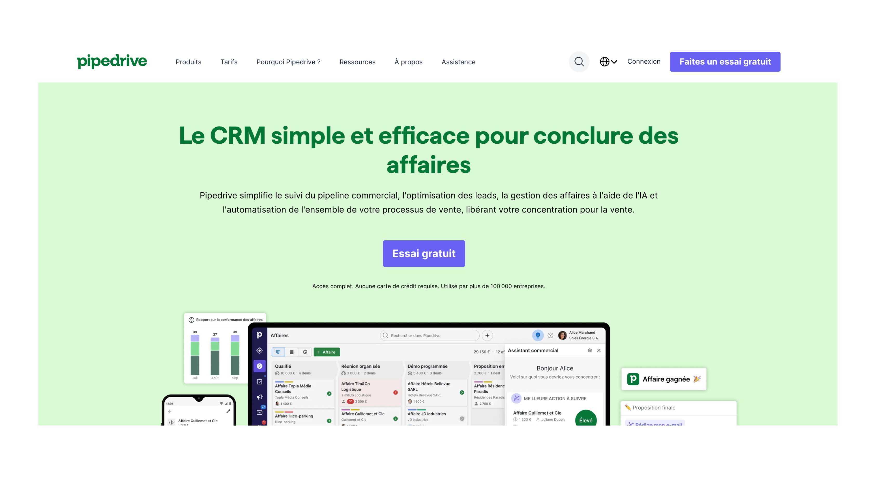 Découvrez comment Pipedrive peut transformer la gestion de vos ventes : pipeline clair, automatisations, tarifs attractifs. Test gratuit 14 jours !