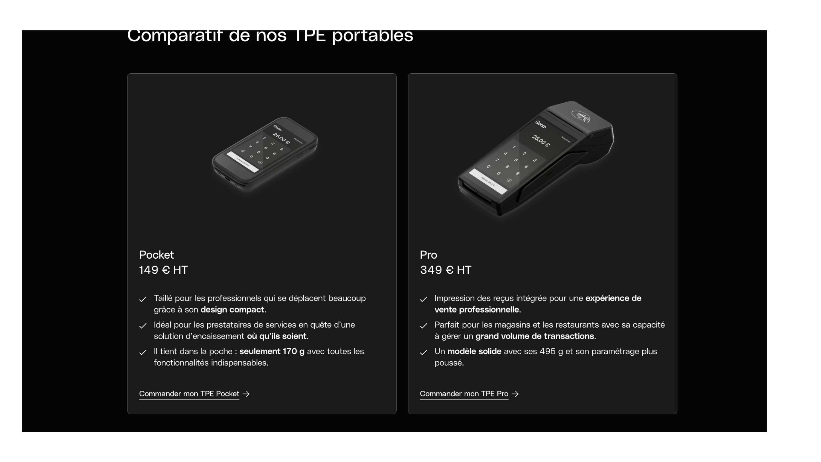 | Encaissement mobile | Terminal dédié coûteux | Limités | Terminal Qonto 1 €/jour |