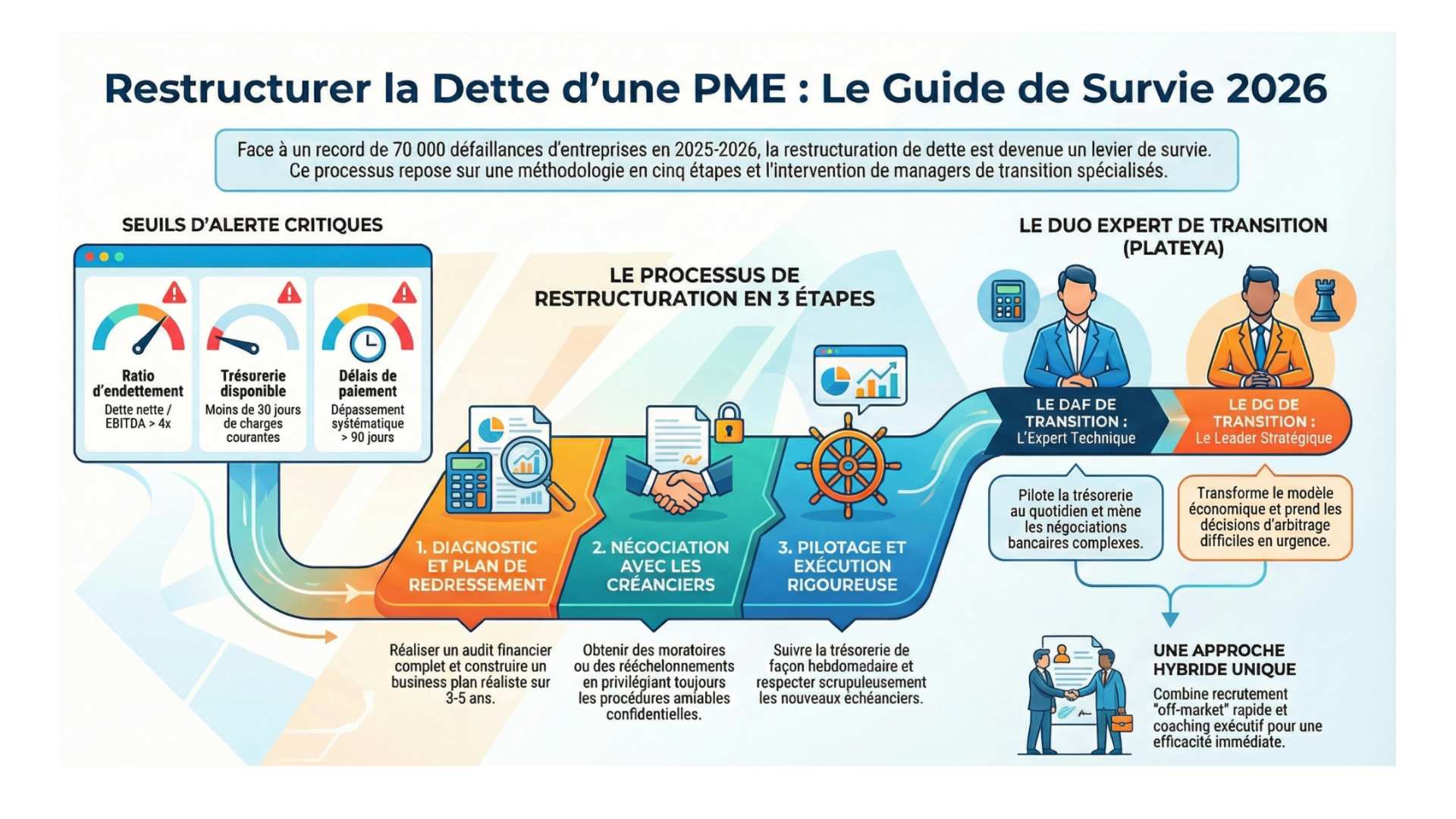 Face à un record historique de défaillances, restructurer la dette d’une PME devient un levier stratégique de survie. Ce guide 2026 détaille les 5 étapes incontournables, le rôle décisif du DAF de transition, les aides publiques disponibles et les erreurs fatales à éviter.