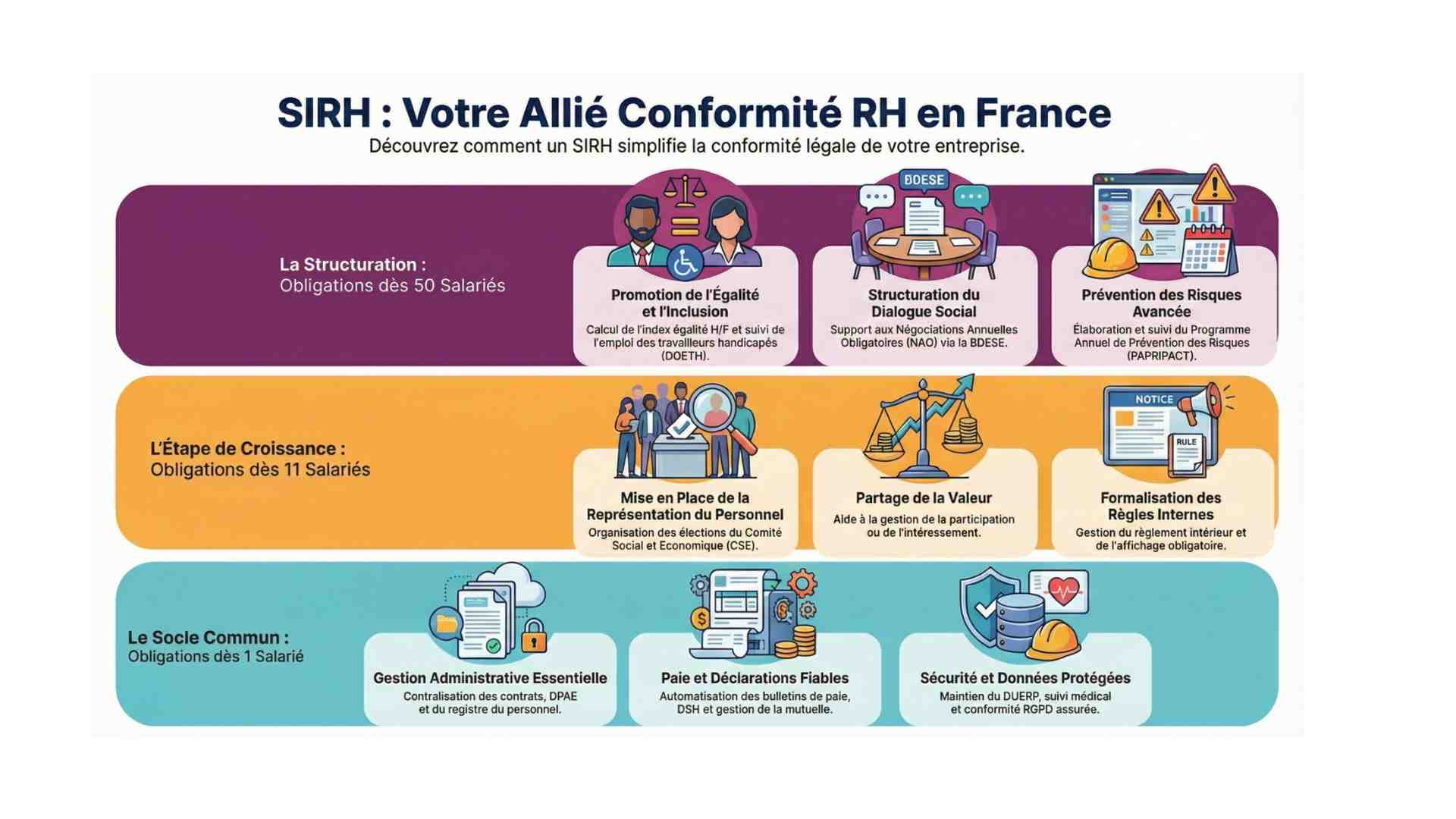 Mise en conformité : sécurisation des obligations légales et des droits des salariés dès la mise en production.