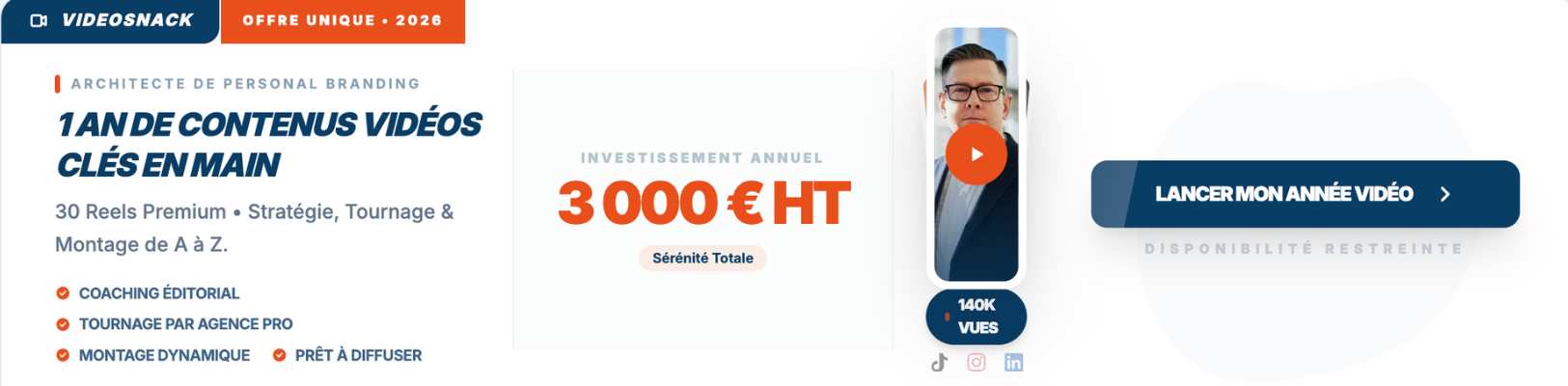 Découvrez notre agence personal branding VideoSnack et repartez avec 1 an de contenus vidéos à fort potentiel de viralité et une véritable stratégie pour votre marque personnelle