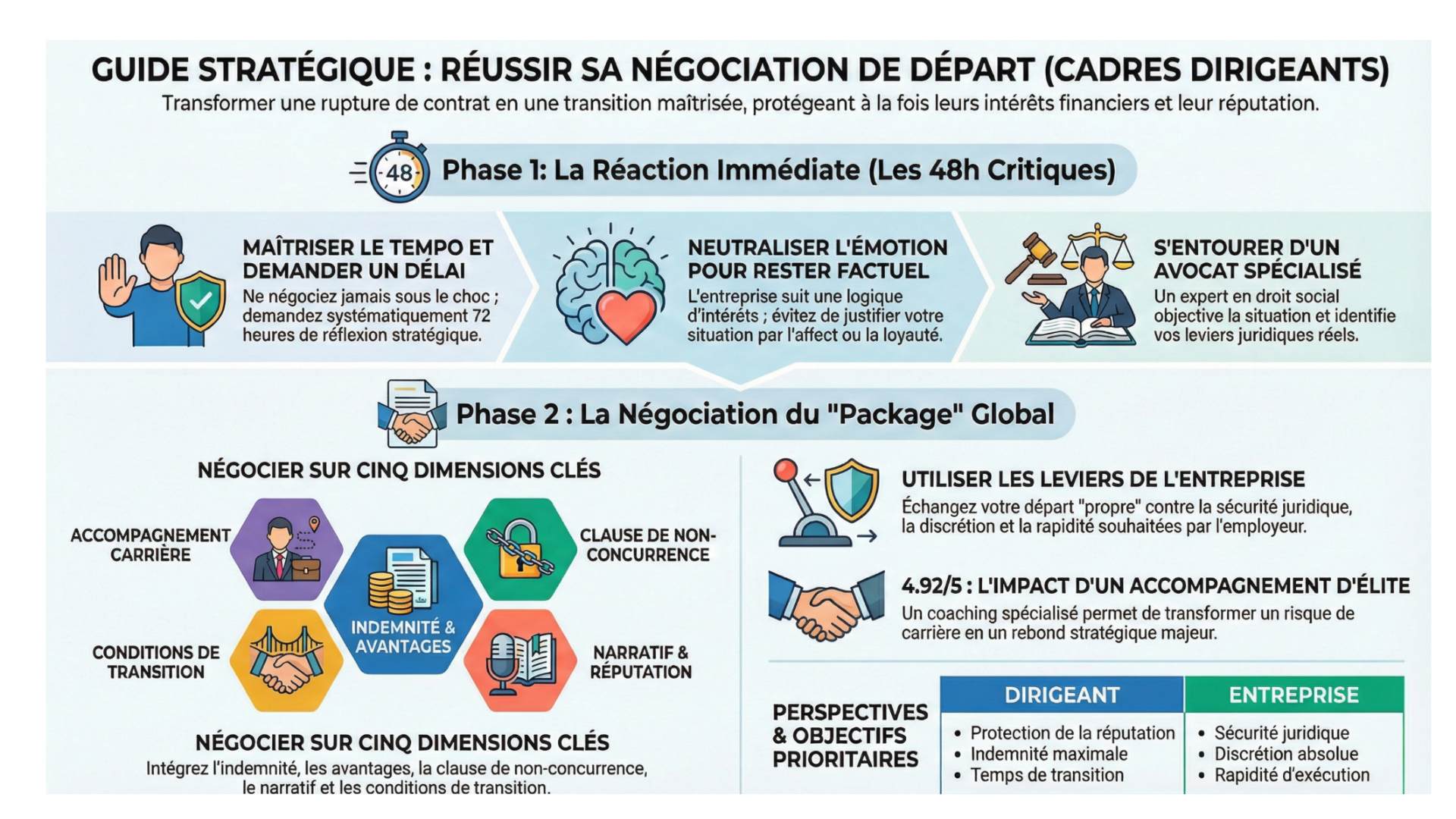 Cadres dirigeants, préparez une négociation de départ stratégique. Indemnité, clause, réputation : les leviers pour sortir avec dignité et force.