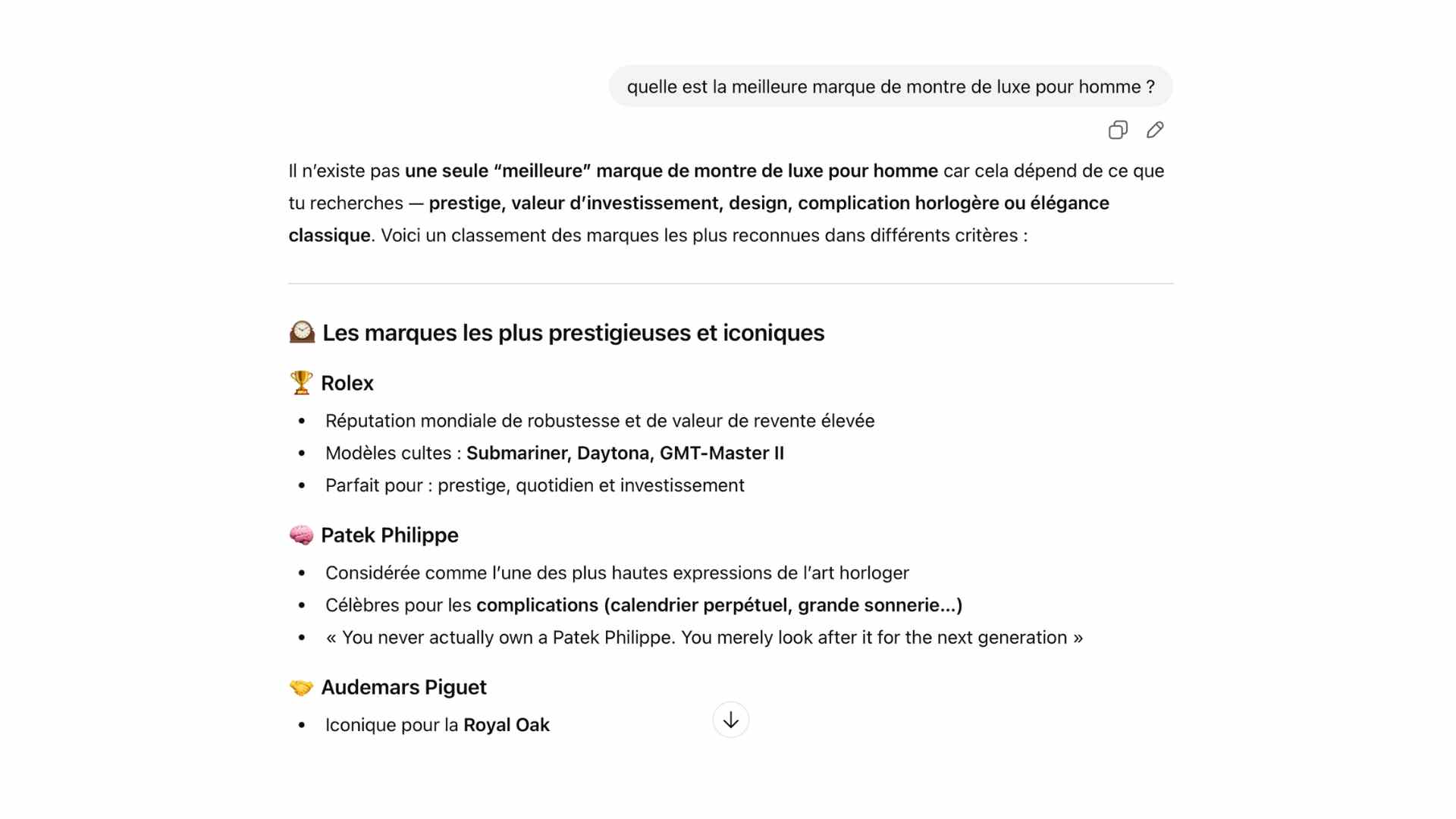 ChatGPT (version gratuite) ne recommande pas volontairement des marques.