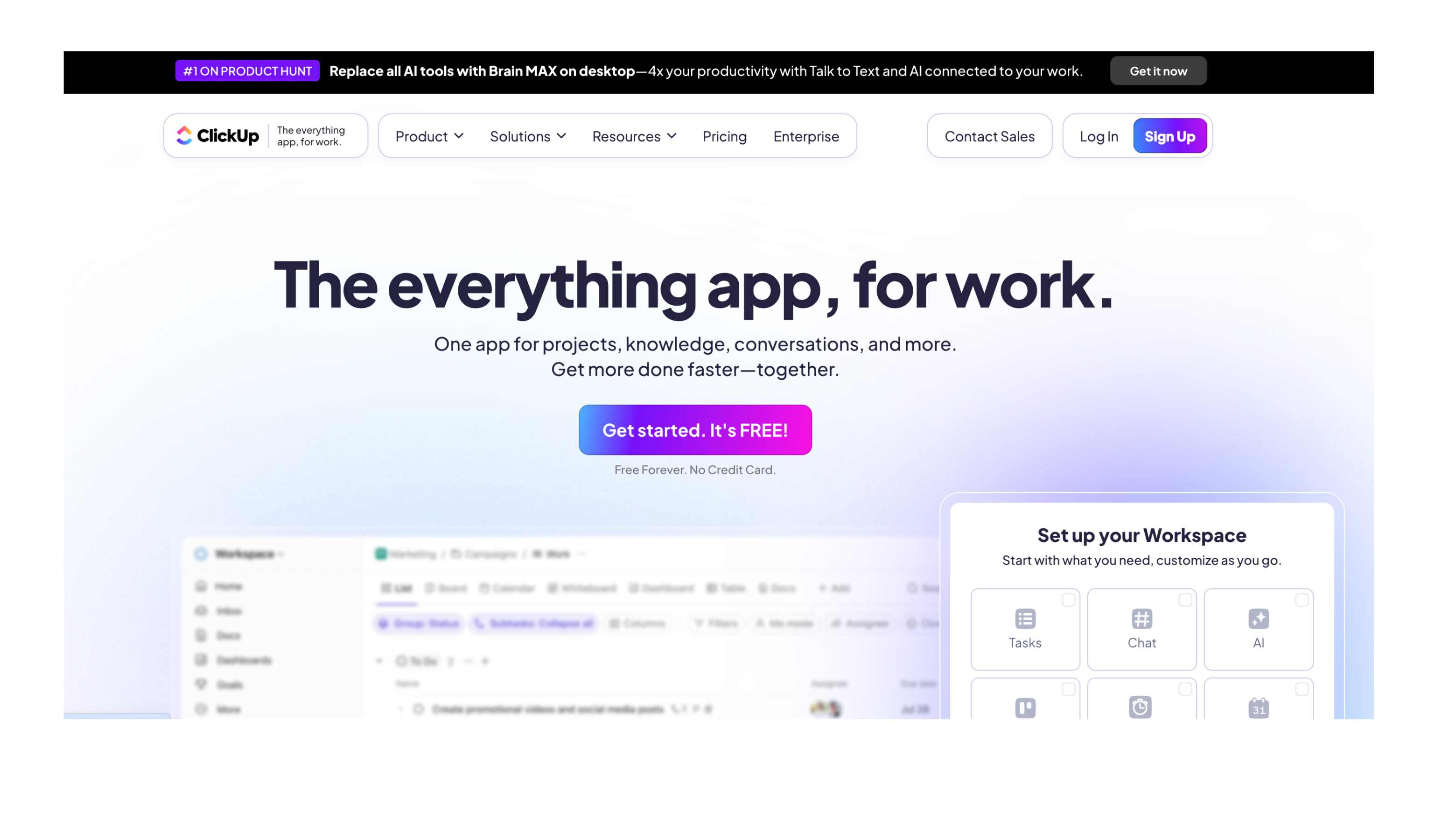 ClickUp đ Le plus complet et personnalisable, idéal pour structurer des équipes en croissance. Demande un investissement initial pour configuration.