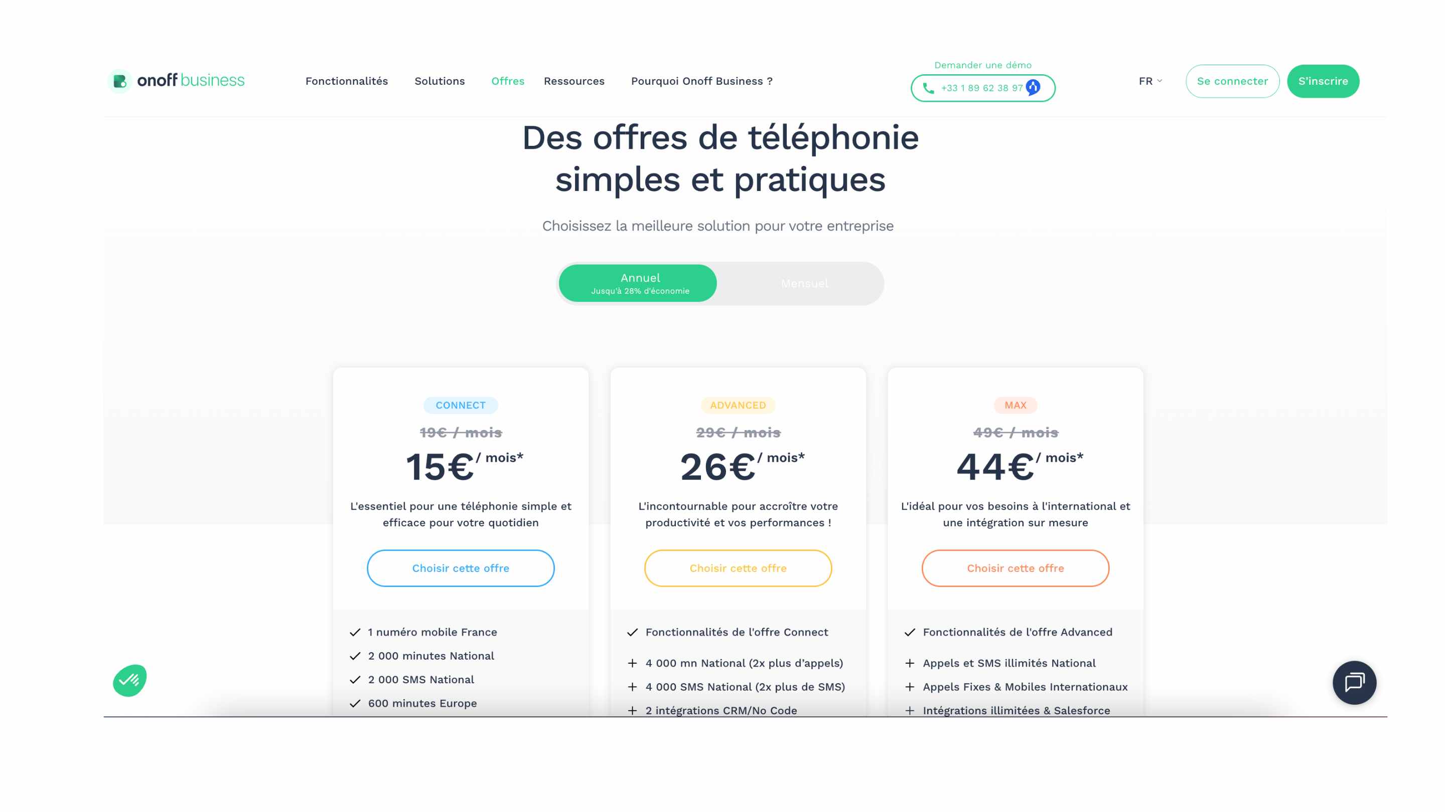 La solution Onoff Business est pensée pour être accessible, claire et adaptée aux besoins des petites structures. Elle propose une tarification simple et sans surprise : à partir de 15 € HT par mois et par numéro, avec un engagement de 12 mois. Ce tarif inclut :