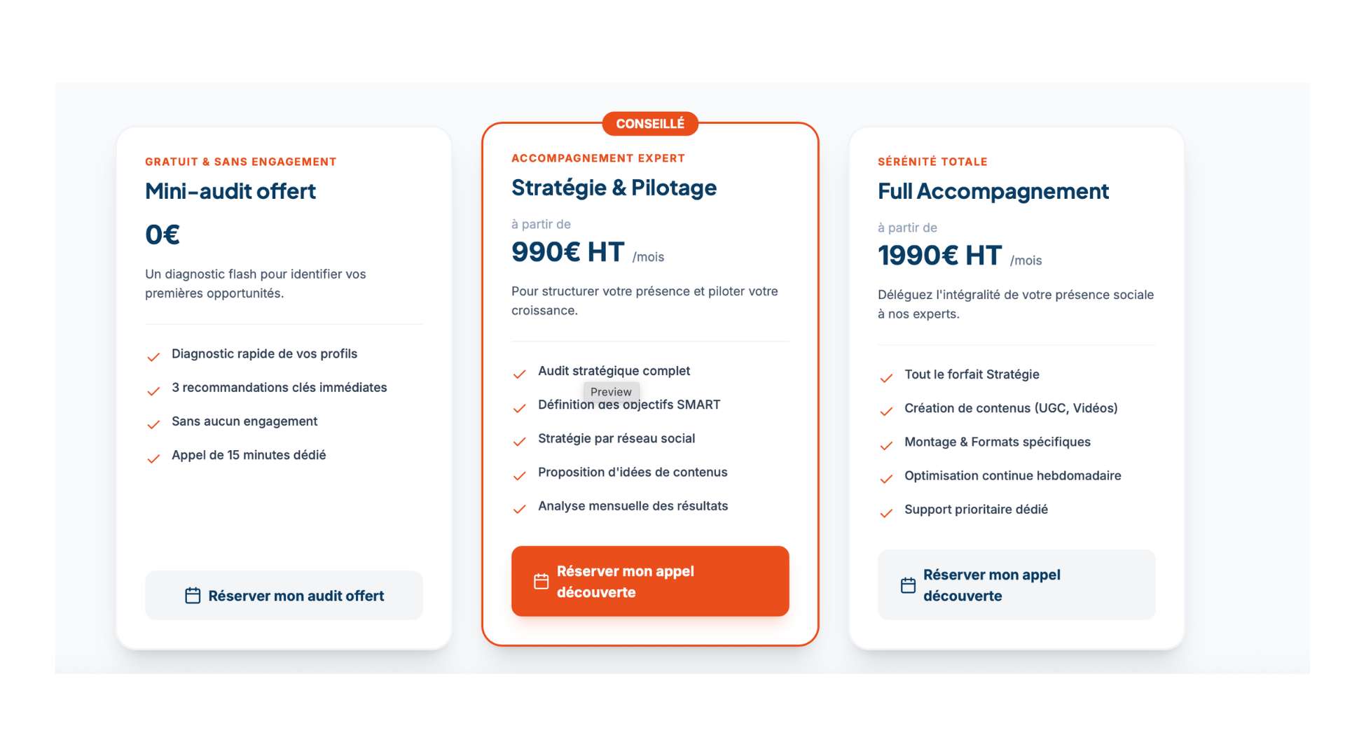 | Gestion de réseaux sociaux (1 à 2 plateformes) | 500 à 1 500 €/mois |