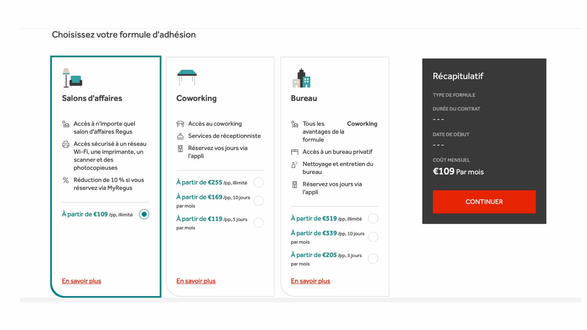 Zoom : Coût de l'accès à la formule Co-working chez REGUS