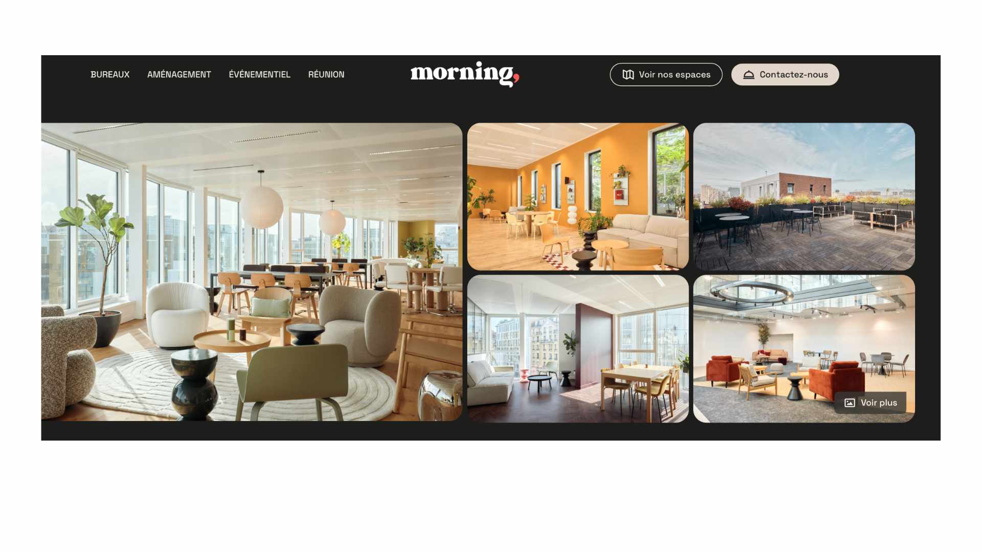 Morning domine le marché français (2e opérateur national). Ici, tout est pensé pour l’expérience : terrasse panoramique sur toit avec vue Sacré-Cœur, salle de sport, 4 douches, 28 salles de réunion (dont studio podcast), 20 cabines téléphoniques.