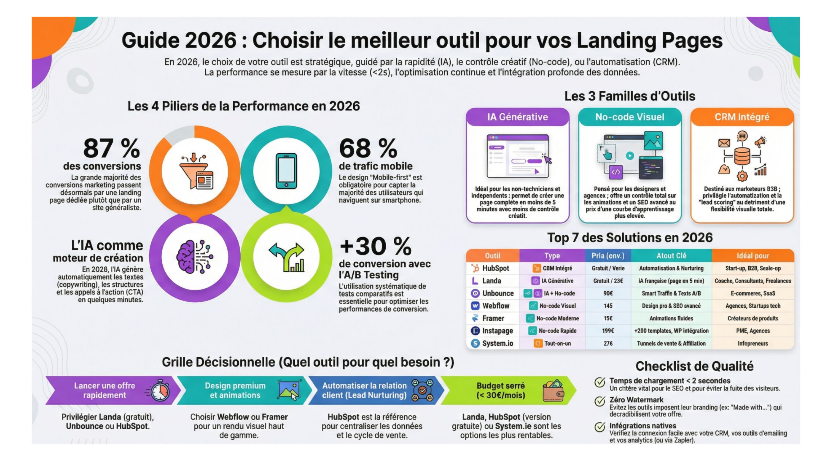 Créer une landing page performante ne se limite plus au design. En 2026, un bon outil doit intégrer l’IA, le mobile-first, les tests A/B et les automatisations marketing.