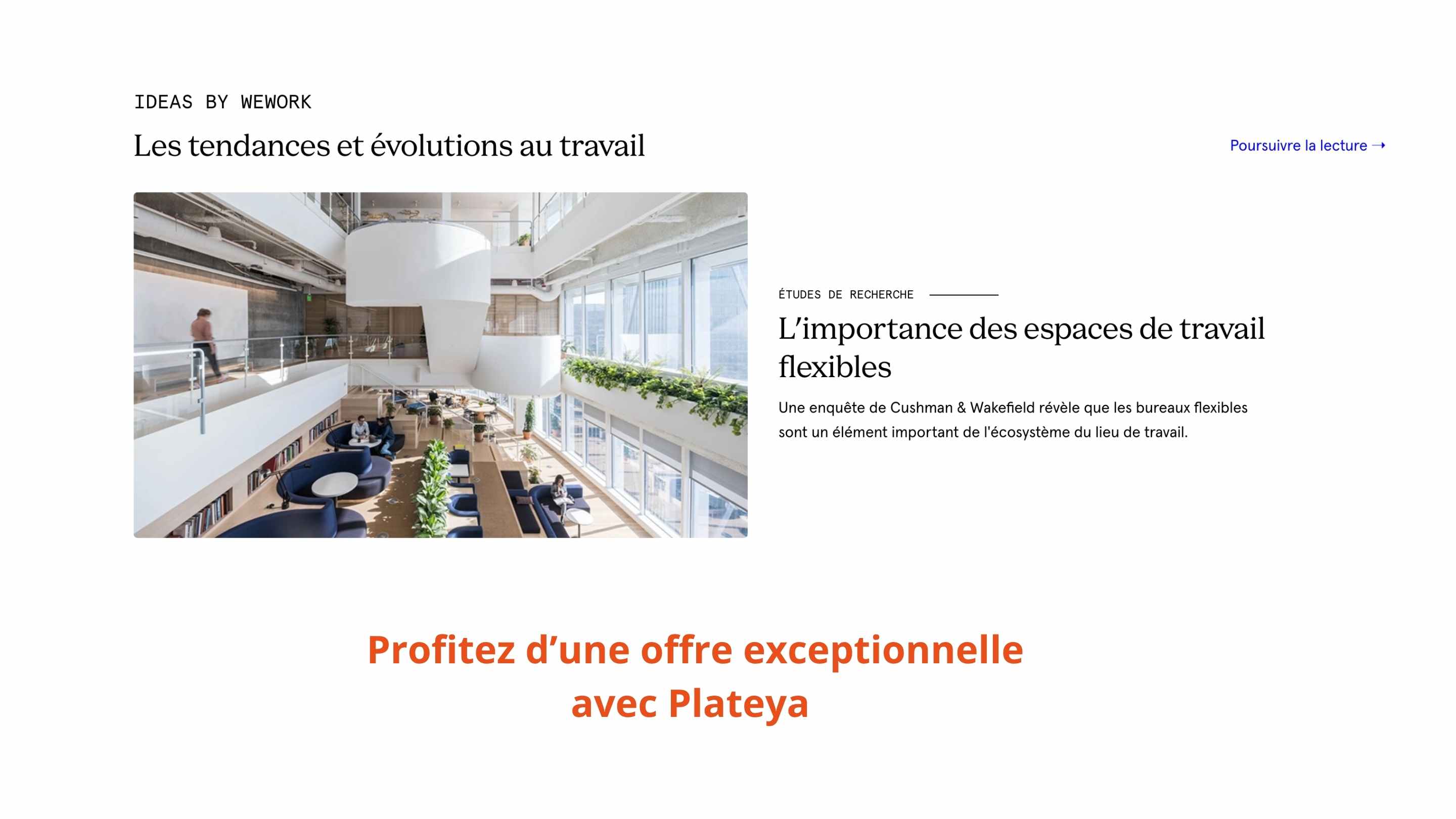 WeWork a marqué l’explosion du coworking dans les grandes métropoles. Présente dans plus de 20 lieux à Paris et dans les principales capitales internationales, la marque attire par sa souplesse d'engagement et ses services inclus.