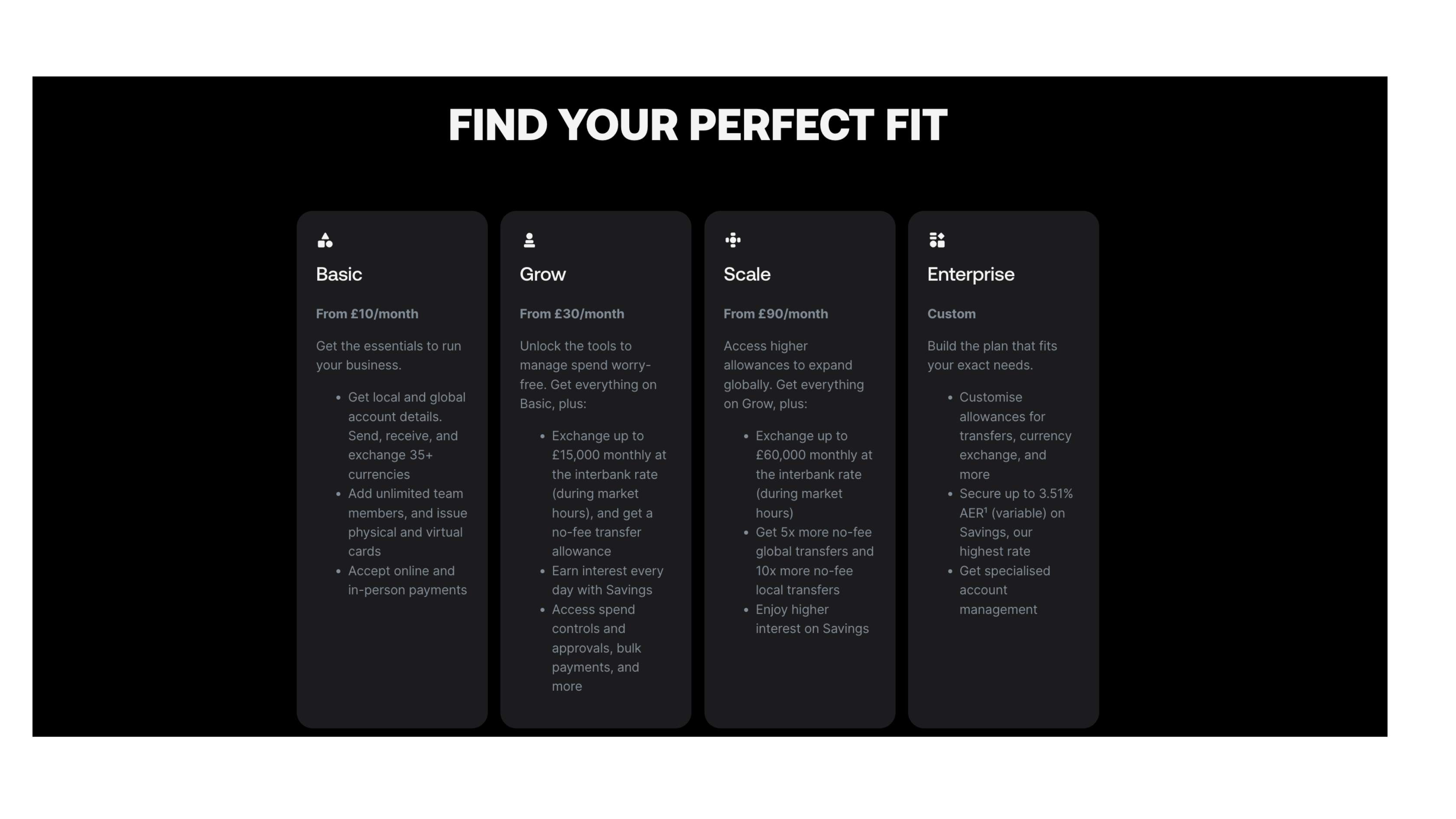 Virements internationaux inclus (ex : 5/mois pour Grow, 25 pour Scale).