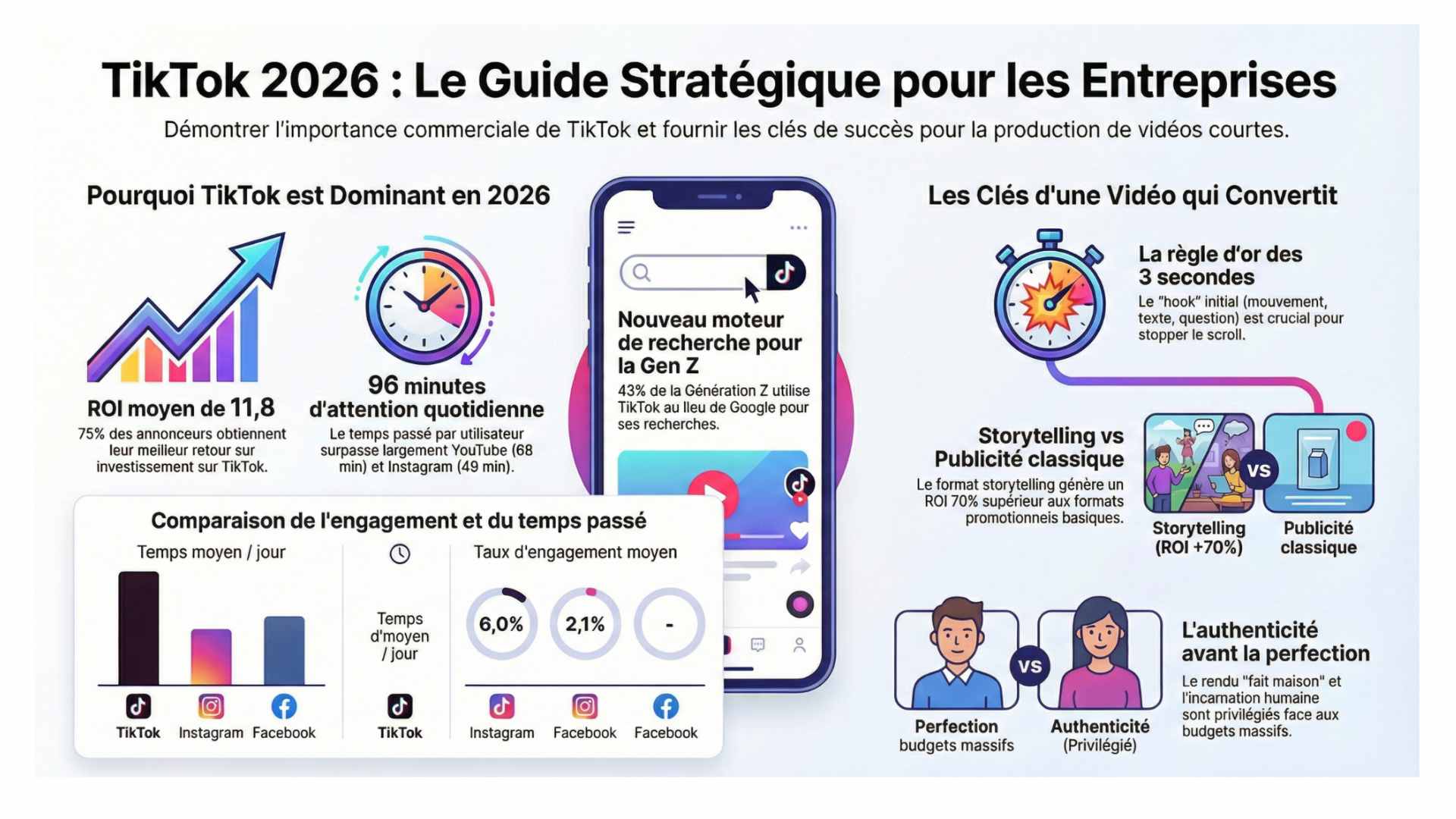 TikTok est devenu un moteur de recherche et un canal d’acquisition majeur, bien au-delà des 18-24 ans. Pourtant, 95 % des professionnels l’utilisent mal : absence de positionnement clair, contenu sans stratégie, zéro tunnel de conversion.