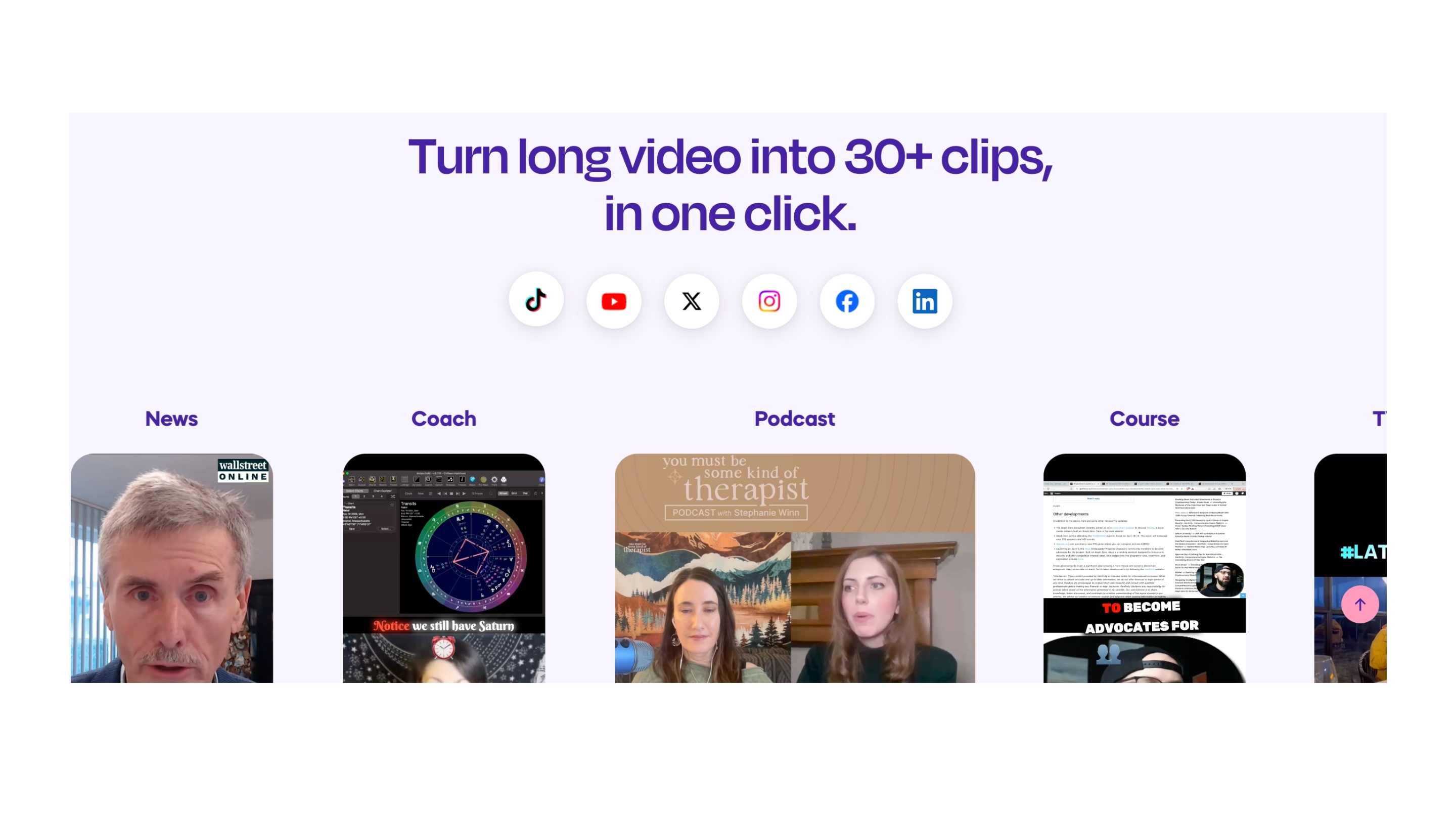 L’outil scanne les vidéos longues (YouTube, Zoom, webinars, interviews) et extrait automatiquement les moments supposés forts. Le moteur de détection, propulsé par l’IA (transcription + NLP), est l’un des plus performants du marché. Il détecte les temps forts non pas seulement par mots-clés, mais par analyse d’intention et de ton.